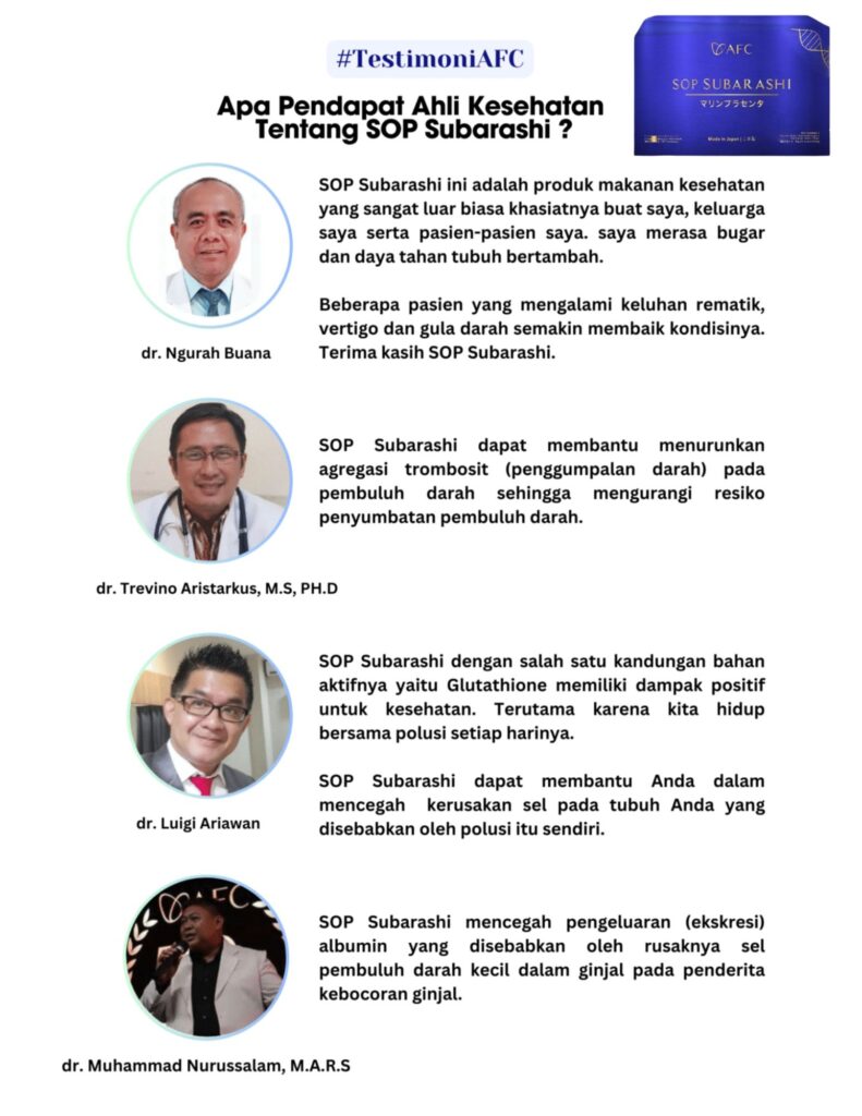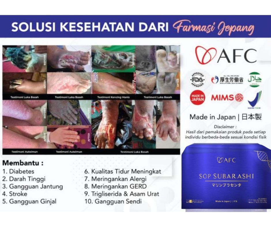 Kami adalah AFC official distributor Makassar yang melayani pemesanan produk AFC yaitu SOP Subarashi Gold, Hikari dan Utsukushhii Gold yang asli.